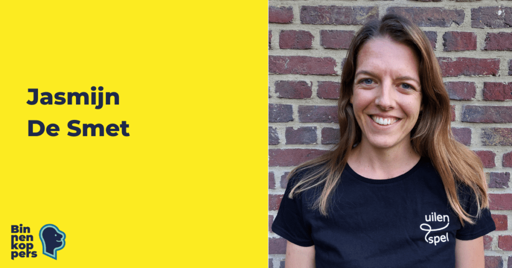 Jasmijn De Smet is communicatieverantwoordelijke voor Uilenspel vzw. Haar drijfveer ligt in het ondersteunen van kinderen bij hun groei via spel en talenten. Als een jongleur houdt ze de uiteenlopende taken van communicatie, promotie, grafische vormgeving, fondsenwerving en IT in beweging.